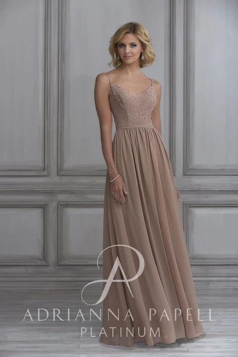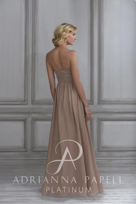 Colors: Available in any Adrianna Papell Platinum Bridesmaid Chiffon color, including Amethyst, Black, Blush, Bridal, Silver, Champagne, Gunmetal, Ivory, Lead, Merlot, Navy, Rose Gold, White