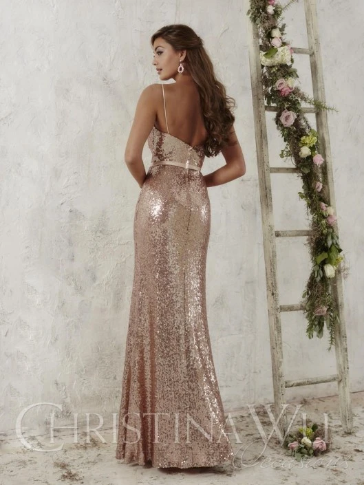 Sequin dress is available in any Christina Wu Occasions Sequin color, including Aubergine, Black, Blush Pink, Champagne, Charcoal, Claret, Espresso, Gold, Ivory, Marine Blue, Navy, Red, Rose Gold, Royal, Silver, Suzi Mint, White