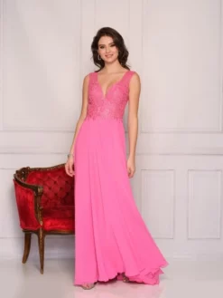 Style 10519 from Dave and Johnny is a sleeveless embroidered bodice prom gown with V neckline and flowy skirt. This gown glides across the dance floor like a dream!