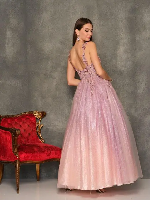 Style 10697 from Dave and Johnny is a prom ball gown with a sweetheart neckline, applique straps, and an open back.
