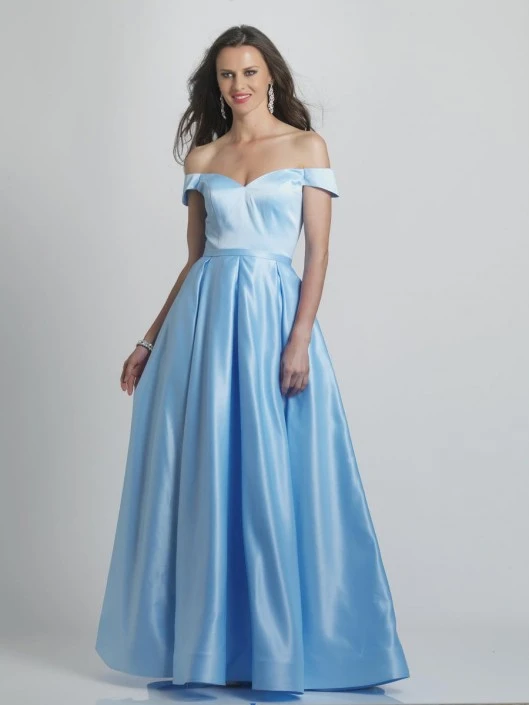 Style A8875W from Dave and Johnny is a taffeta off the shoulder plus size ballgown. Not pictured in W size.