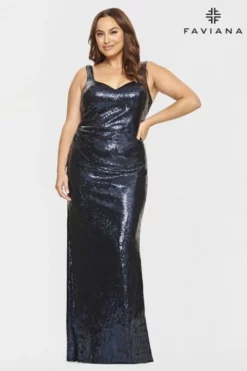 Style 9531 from Faviana Curve is a Sequin Plus Size Prom Gown With A Sweetheart Neckline And Ruching At Hip With Invisible Zipper And Hook And Eye Closure.