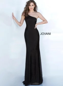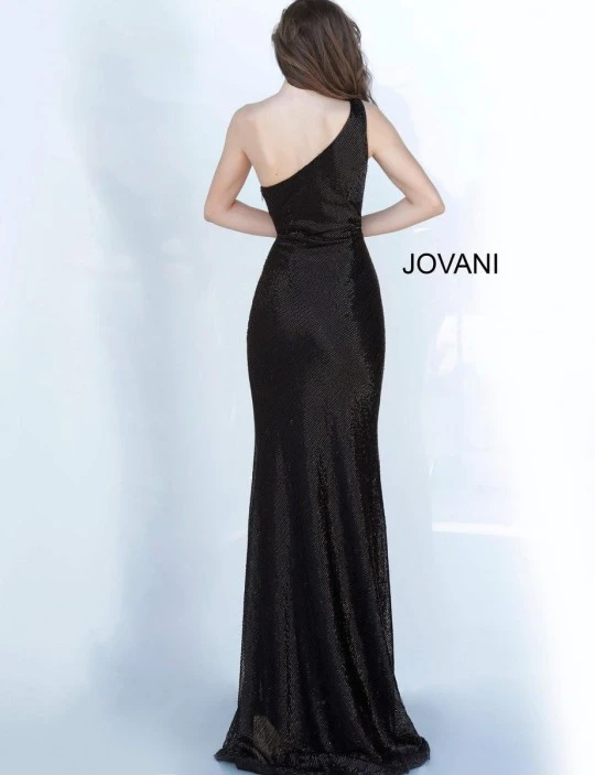 Style 1248 from Jovani is a one shoulder beaded fitted gown.