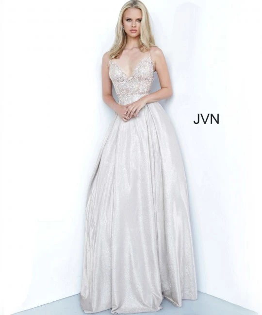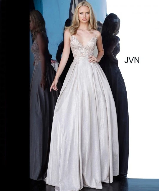 Style JVN2206 from JVN by Jovani is an Embroidered Bodice Tie Back Ballgown.