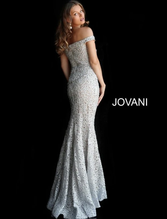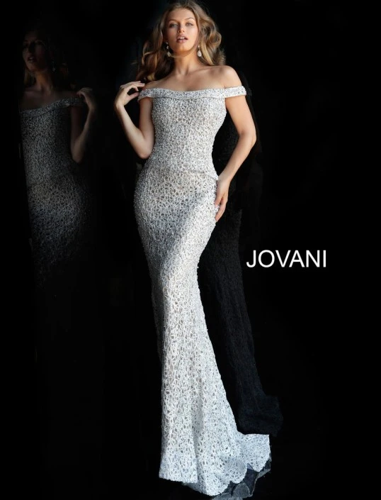 Style 61357 from Jovani is an Off the Shoulder Fitted Evening Dress.