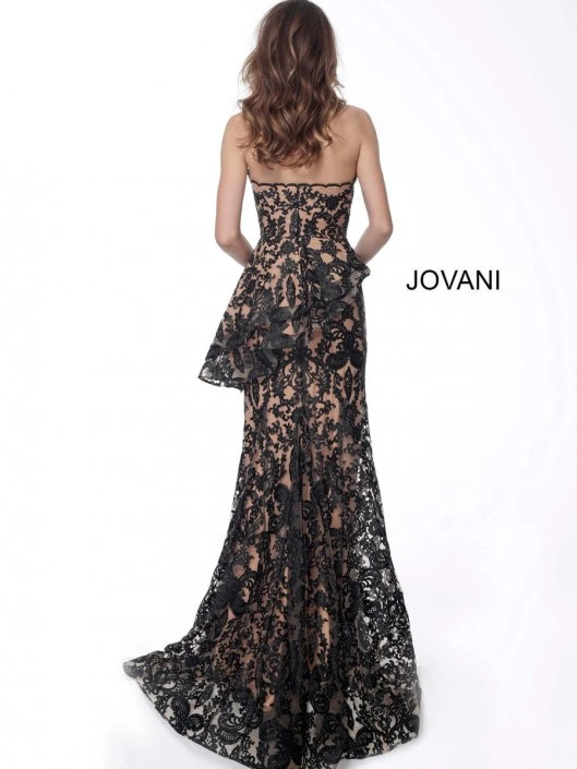 Style 61524 from Jovani is a Strapless Fitted Evening Dress with an asymmetric peplum.
