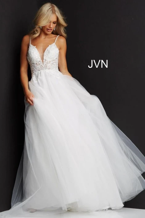 Style JVN07595 from JVN by Jovani is a Sweet and Feminine, Embroidered Bodice Tulle Prom Gown.