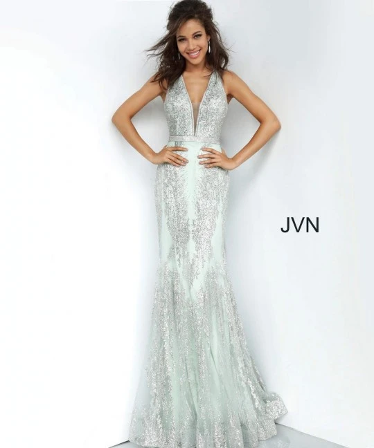 Style JVN3663 from JVN by Jovani is an Embellished Backless Mermaid Gown.