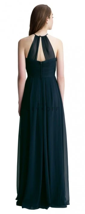 Sometimes brides just want to keep things simple and chic for their bridesmaids, and Bill Levkoff 7001 is the perfect bridesmaid dress to do just that. As one of the most popular styles from the #Levkoff collection, a more affordable collection by top bridesmaid designer Bill Levkoff, style 7001 is a chiffon, long bridesmaid dress with a halter neckline and spaghetti straps. This halter bridesmaid dress offers a more modest touch for the girl who desires a higher neckline. Criss-cross pleating adorns the bodice creating a flattering silhouette. The back has a button closure at the neck creating a keyhole, giving this bridesmaid dress a little extra flair. The a-line skirt on this #Levkoff style 7001 also features center inverted front and back pleats adding to its classic look.