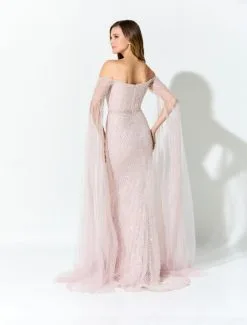 Fabric: Stretch Crepe With Three-Dimensional Beaded Tulle,