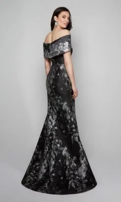 Alyce Paris MOB Size 10 Black/Silver Alyce 27622 Sparkling Off Shoulder Gown
