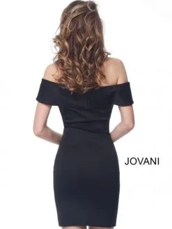 Jovani MOB Jovani 66239 Feather Neck Knee Length Evening Dress