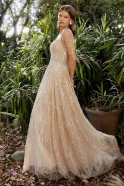 Andrea & Leo Andrea And Leo A1114 Rose Gold Tea Length Dress